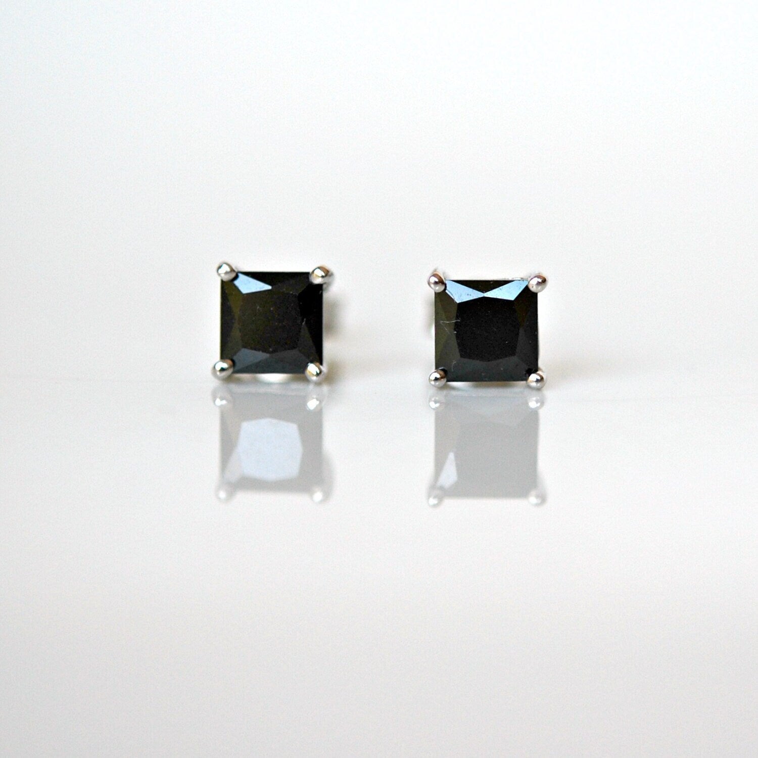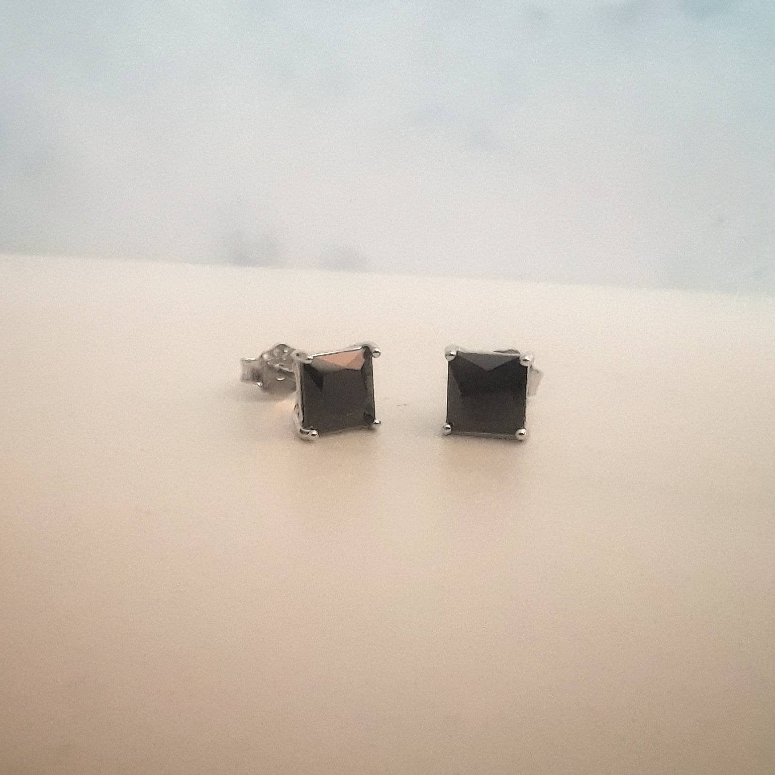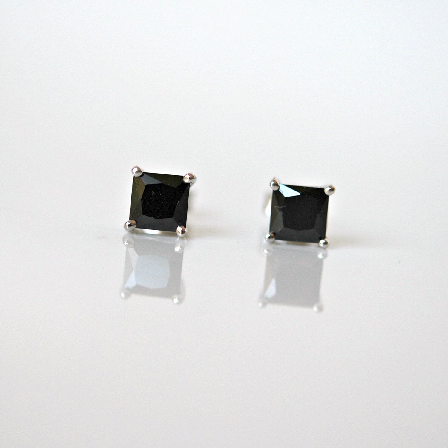 Simple yet edgy, these sterling silver stud earrings showcase a square black cubic zirconia solitaire. Available in 4mm, 5mm or 6mm.