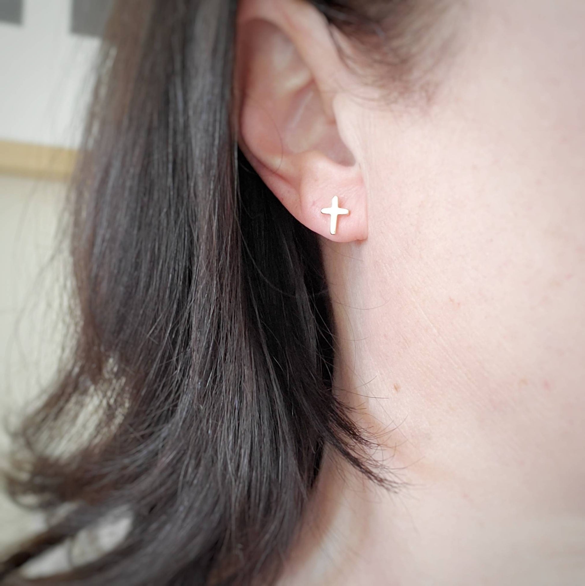 These delicate and traditional cross stud earrings are a beautiful symbol of the faith you carry.