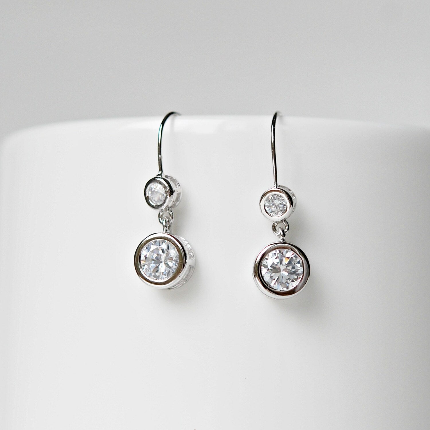 Modern yet feminine - simple and comfortable french hook earwires with two silver, gold or rose gold bezel set clear cubic zirconia crystals that glitter like diamonds. A great everyday pair that will go with everything you put on.