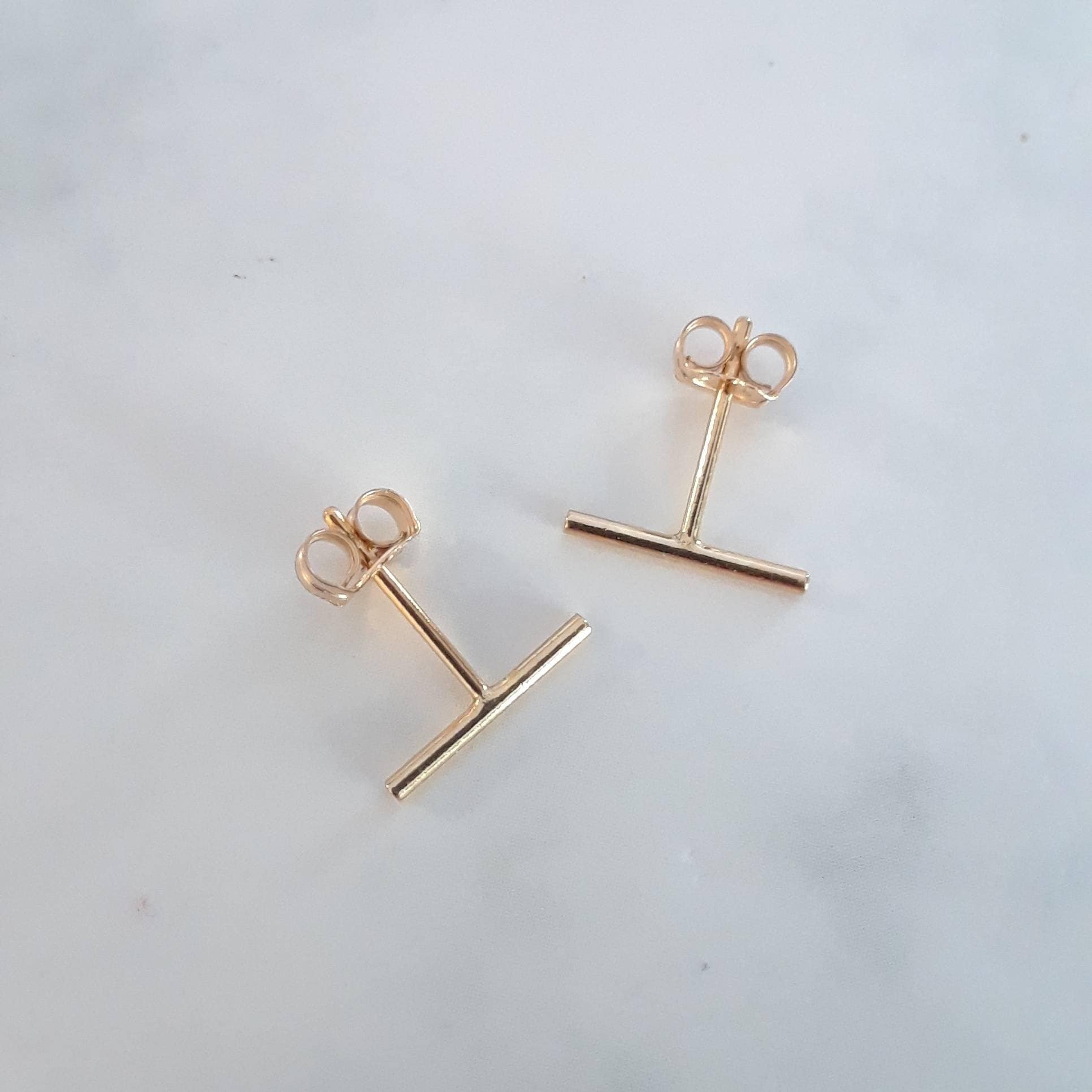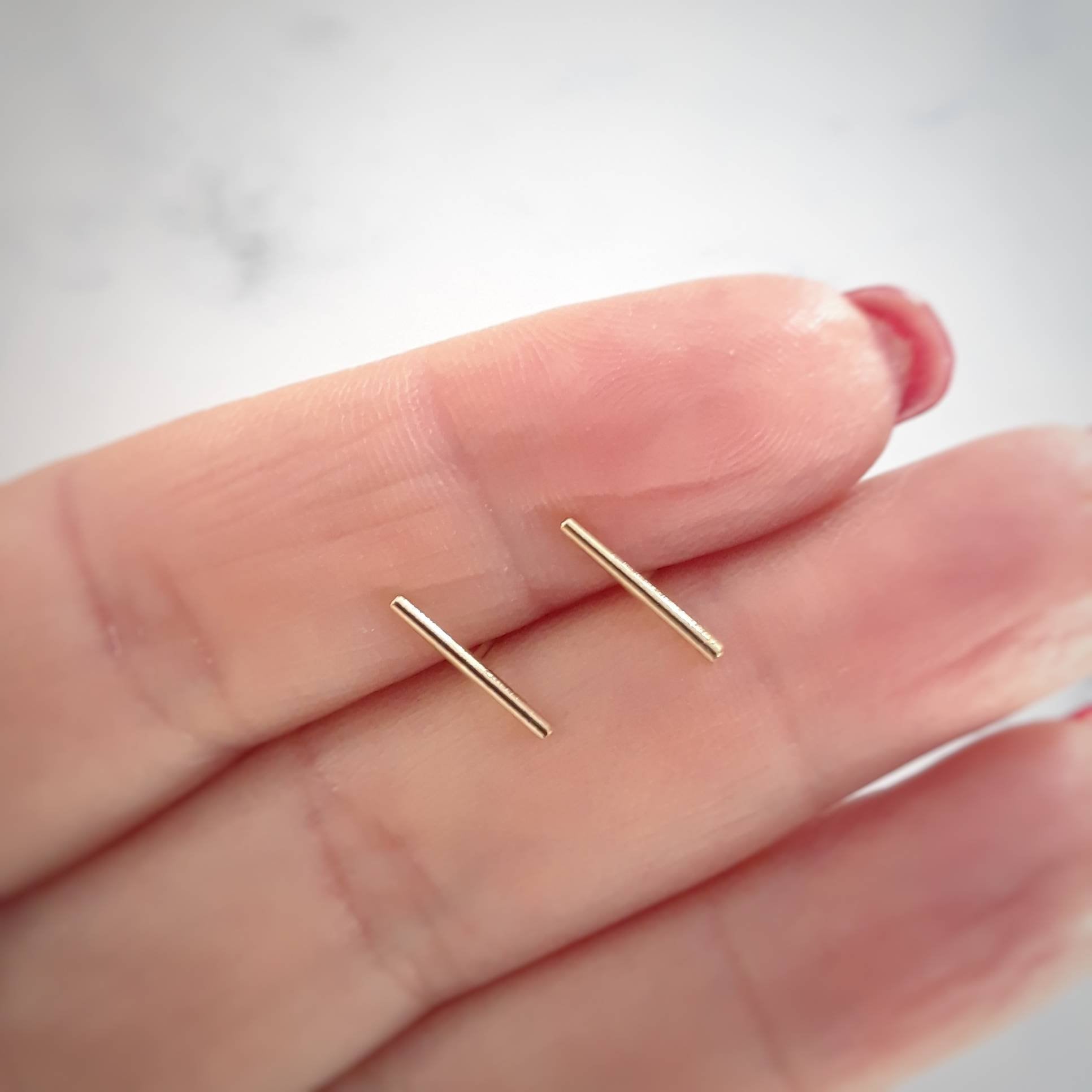 These ultra-minimalist gold bar stud earrings are your next everyday staple. They work perfectly for an ear stack, or make a statement on their own.
