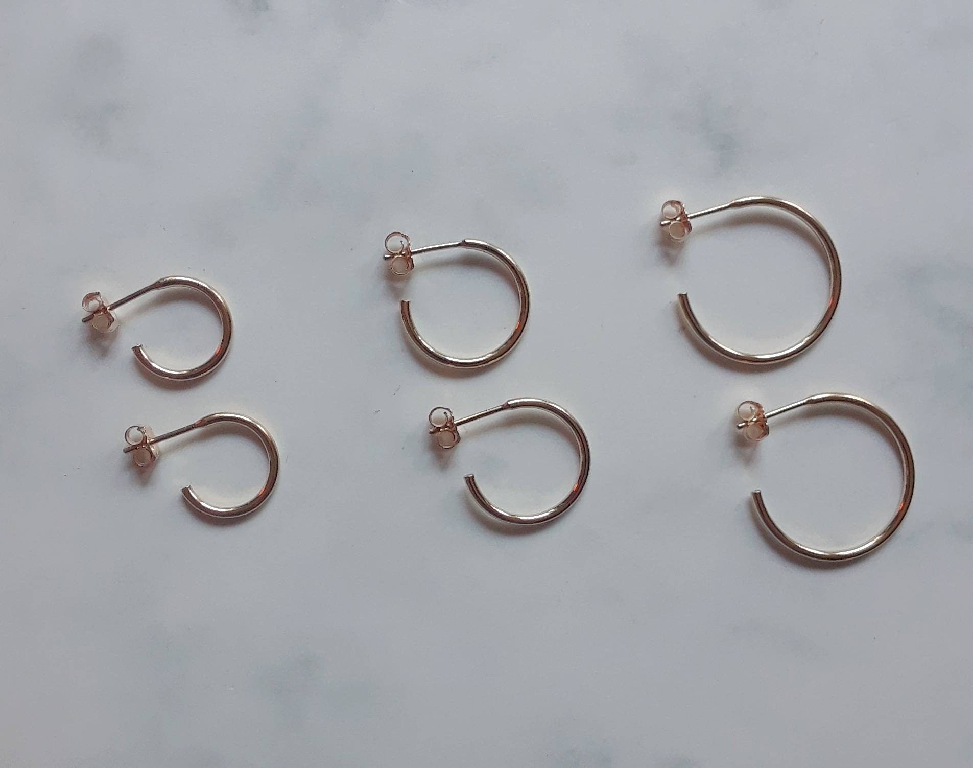 ✩ Size: Hoops are available in 12, 15, 20, 25 or 30mm diameter; posts come with a pair of matching metal earnuts and clear rubber backs.