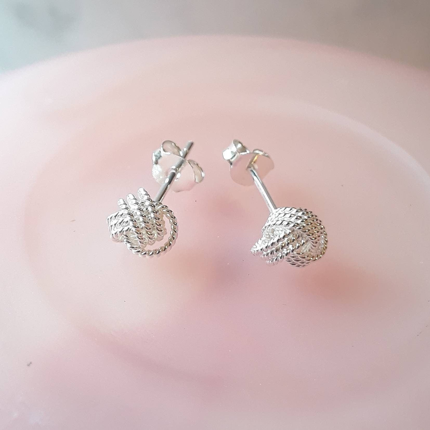 The love knot is a ubiquitous symbol of commitment and fidelity in cultures across the world. These tiny silver knots made with twisted wire will become your go-to stud earrings!