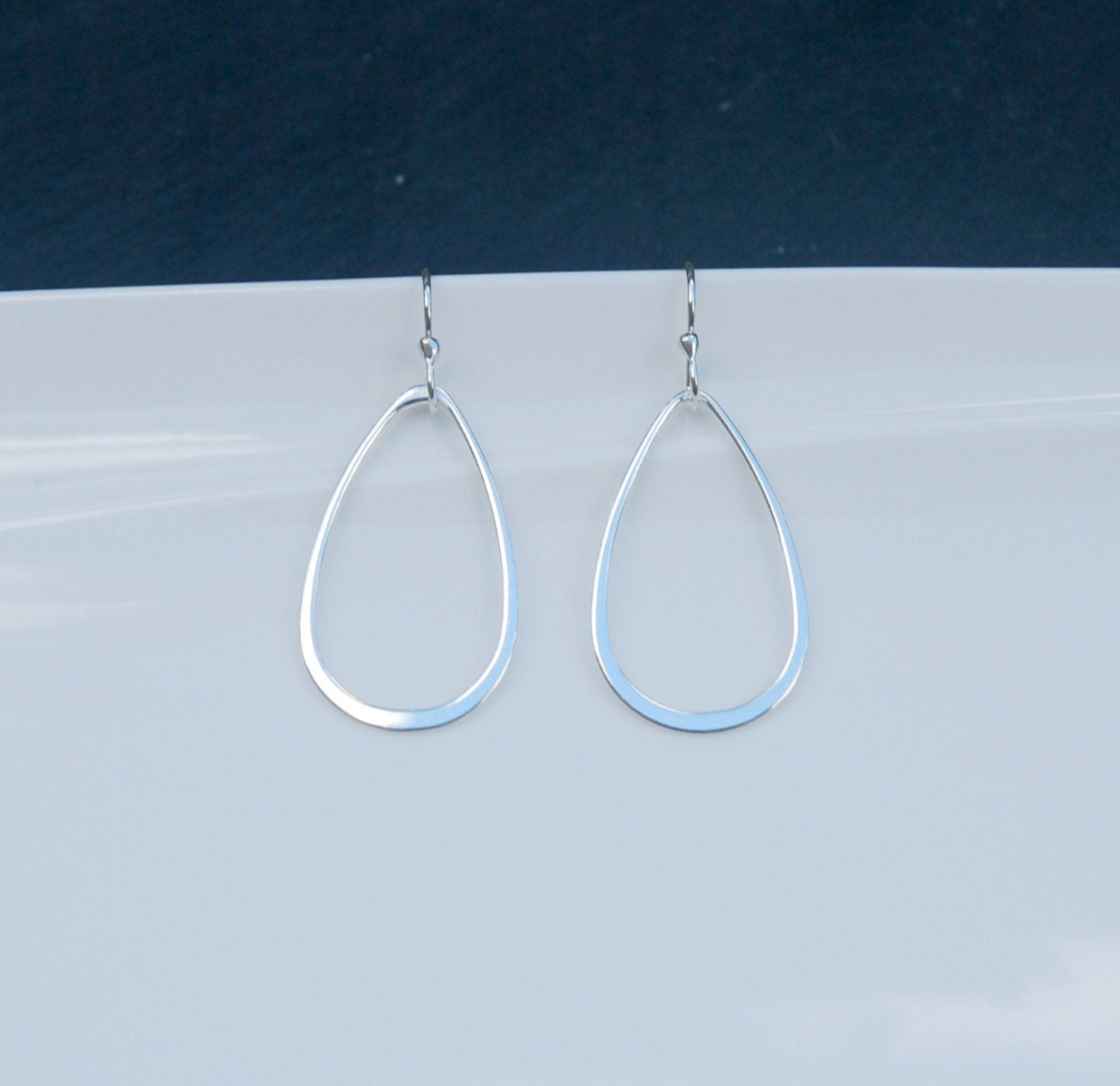 Simple yet elegant, flat shiny sterling silver teardrop hoops swinging from sterling silver ear hooks, these are the ones that you will reach for everyday!