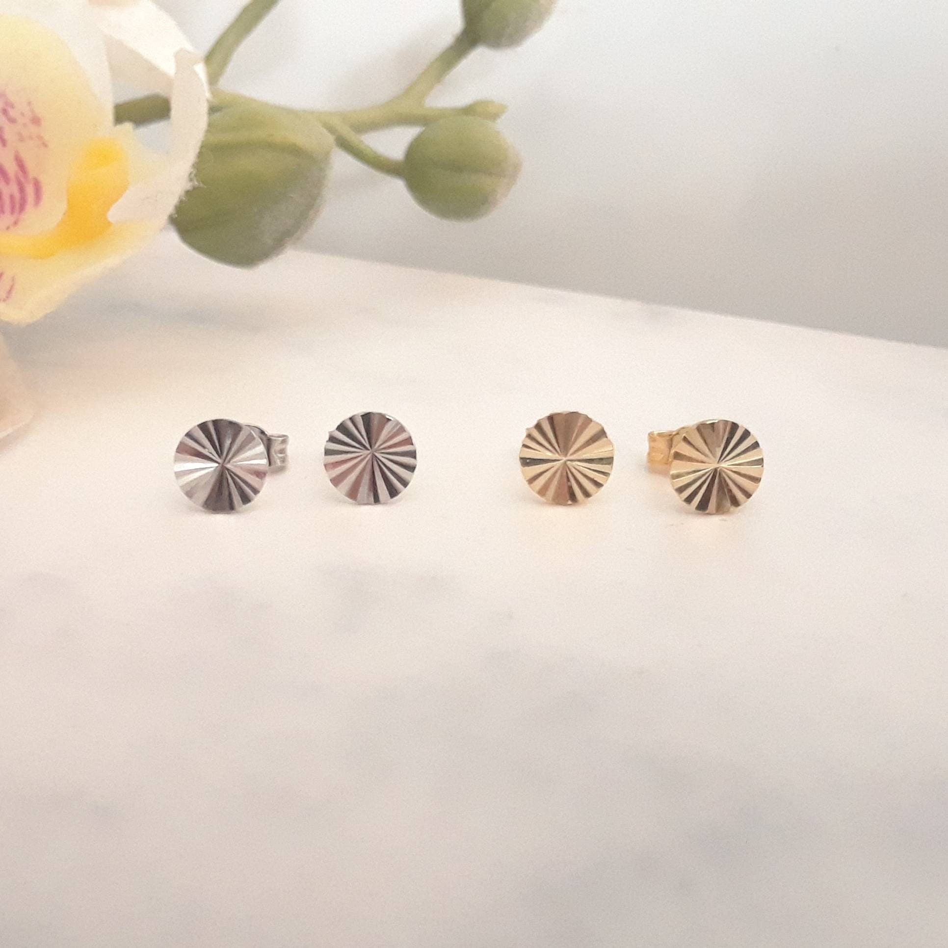 This pretty pair of silver or gold textured disk stud earrings will have you seeing stars....simple, modern, and easy enough to wear everyday.