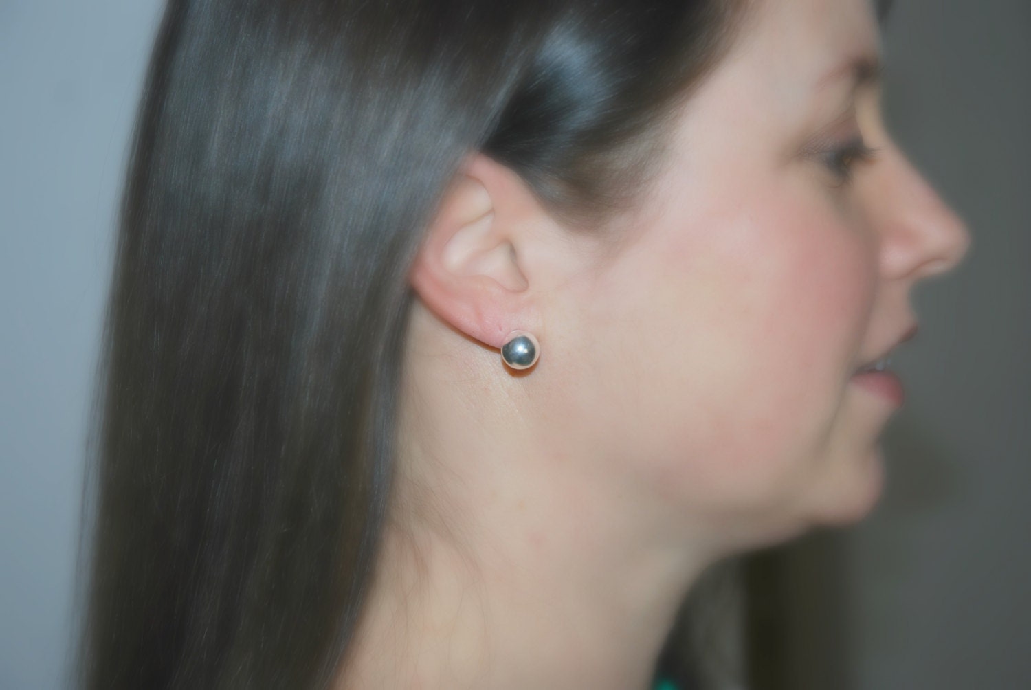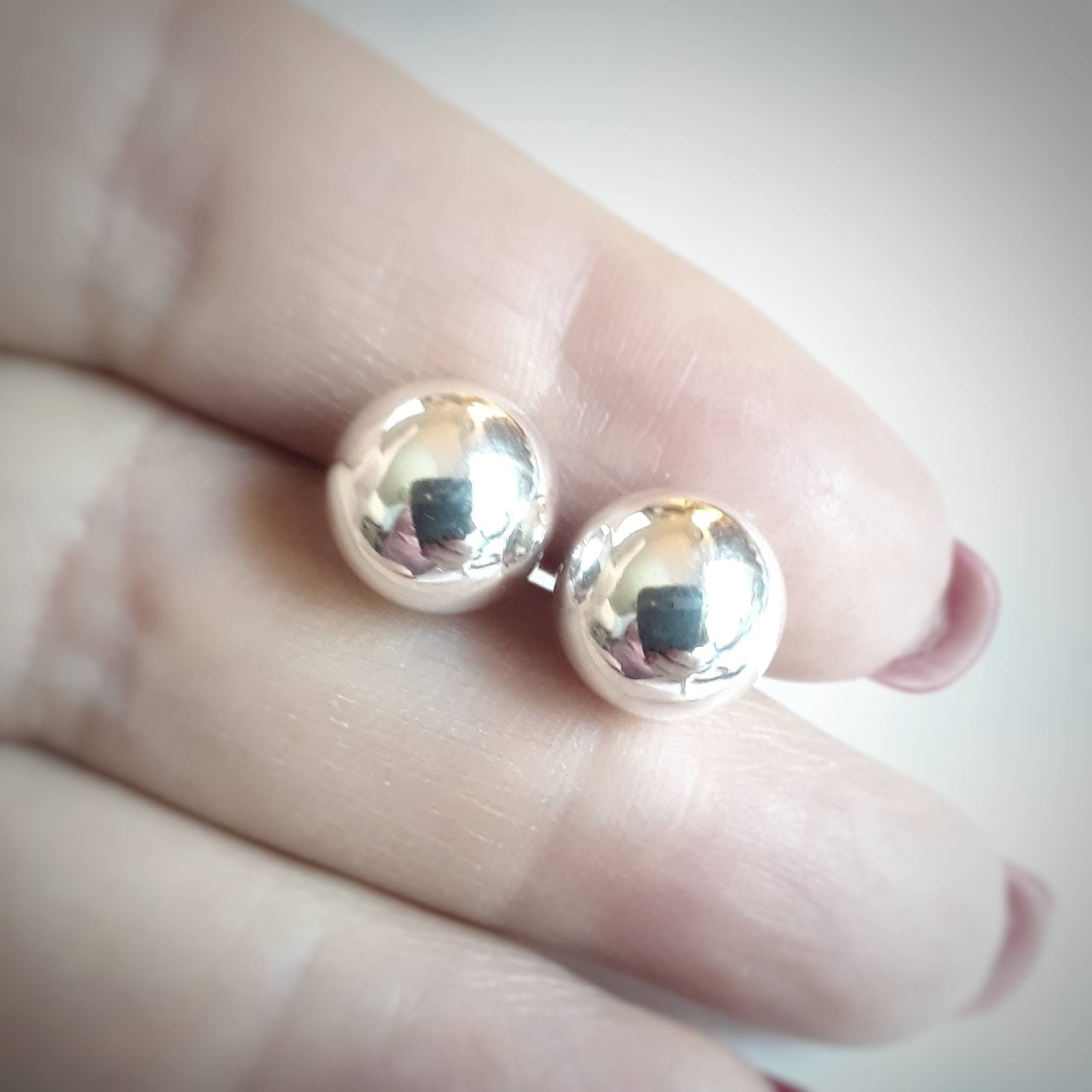 Polished silver ball stud earrings...if you are looking for a simple pair of classic earrings for everyday wear these are perfect! 6th photo shows 10mm on the left; for comparison - 8mm are on the right.