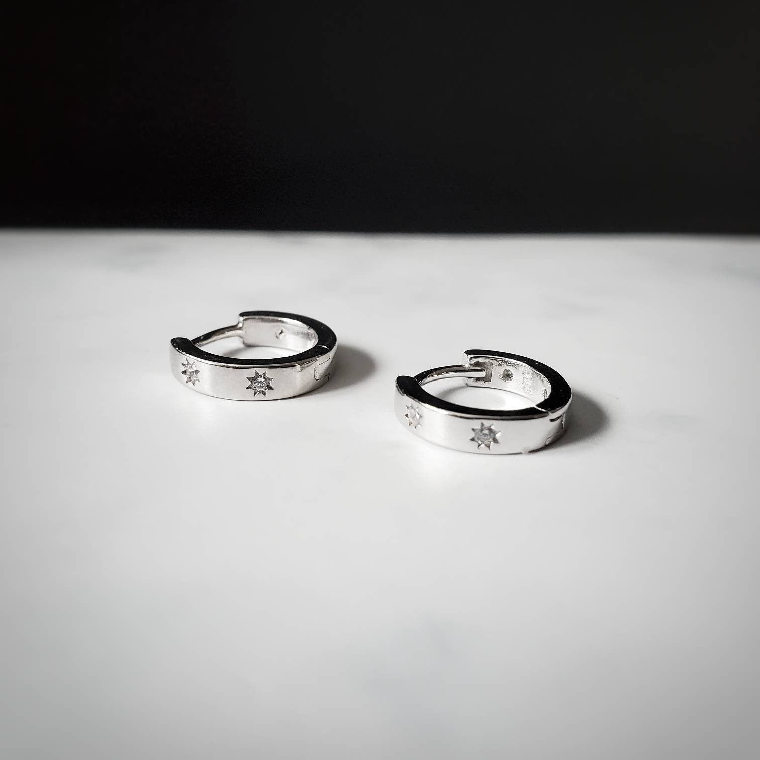 For the minimalist that can't resist a little glitz! These small hoops with tiny clear cubic zirconia crystals are the perfect base to your stack.