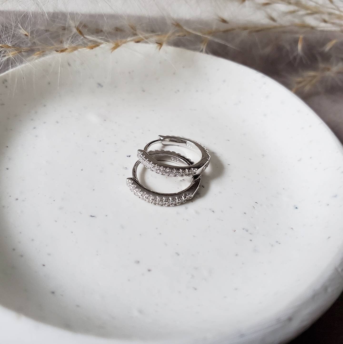 Simple and sweet. Slender sterling silver hoops with sparkling clear cubic zirconias that go all the way around....perfect for every day or perhaps your special day?