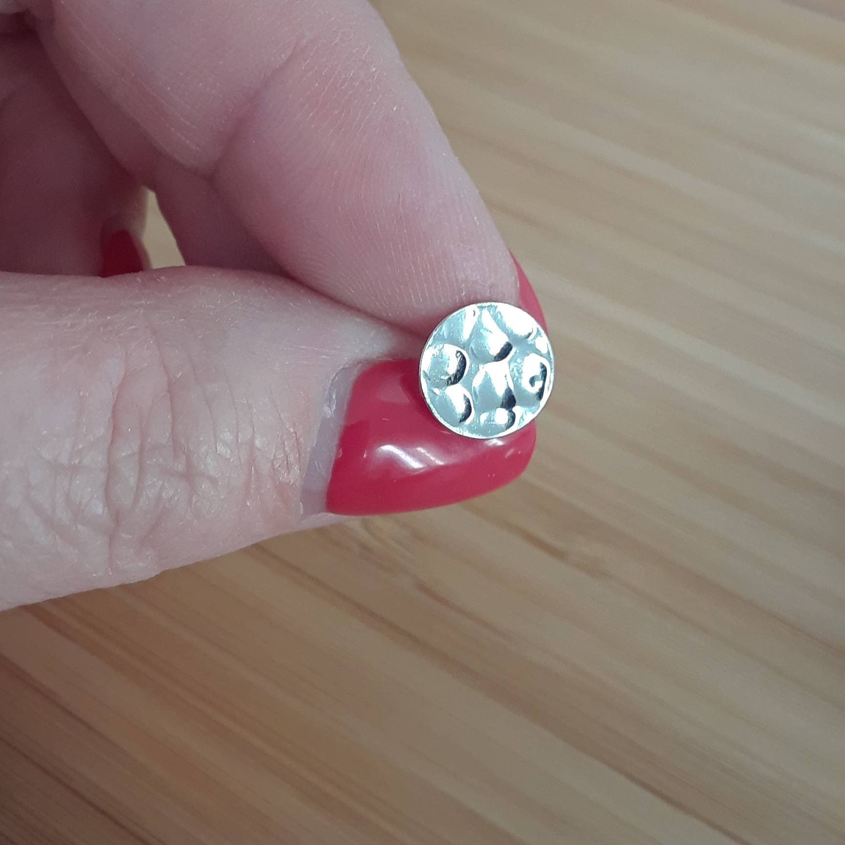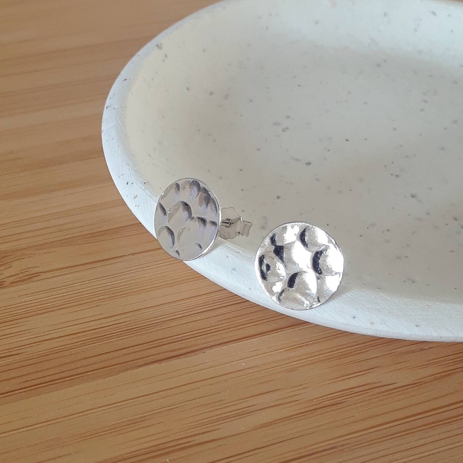 Sterling silver disk studs, silver disk earrings, round silver studs, 9mm hammered disk, dainty circle studs, dot earrings, simple earring