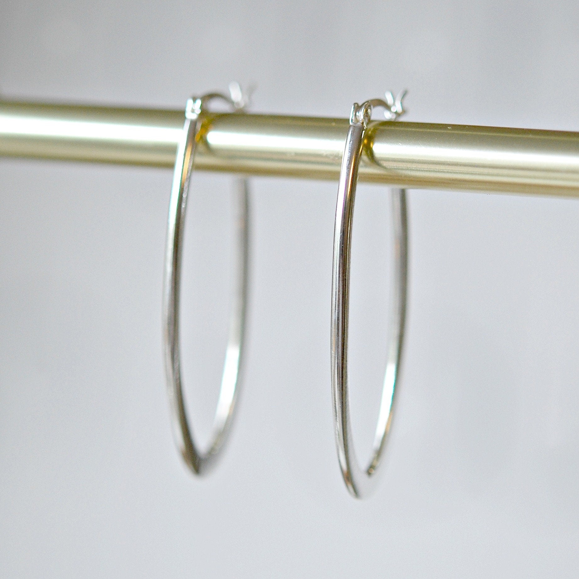 Large elongated oval sterling silver hoops.....so simple and yet so modern! Perfect for everyday wear.