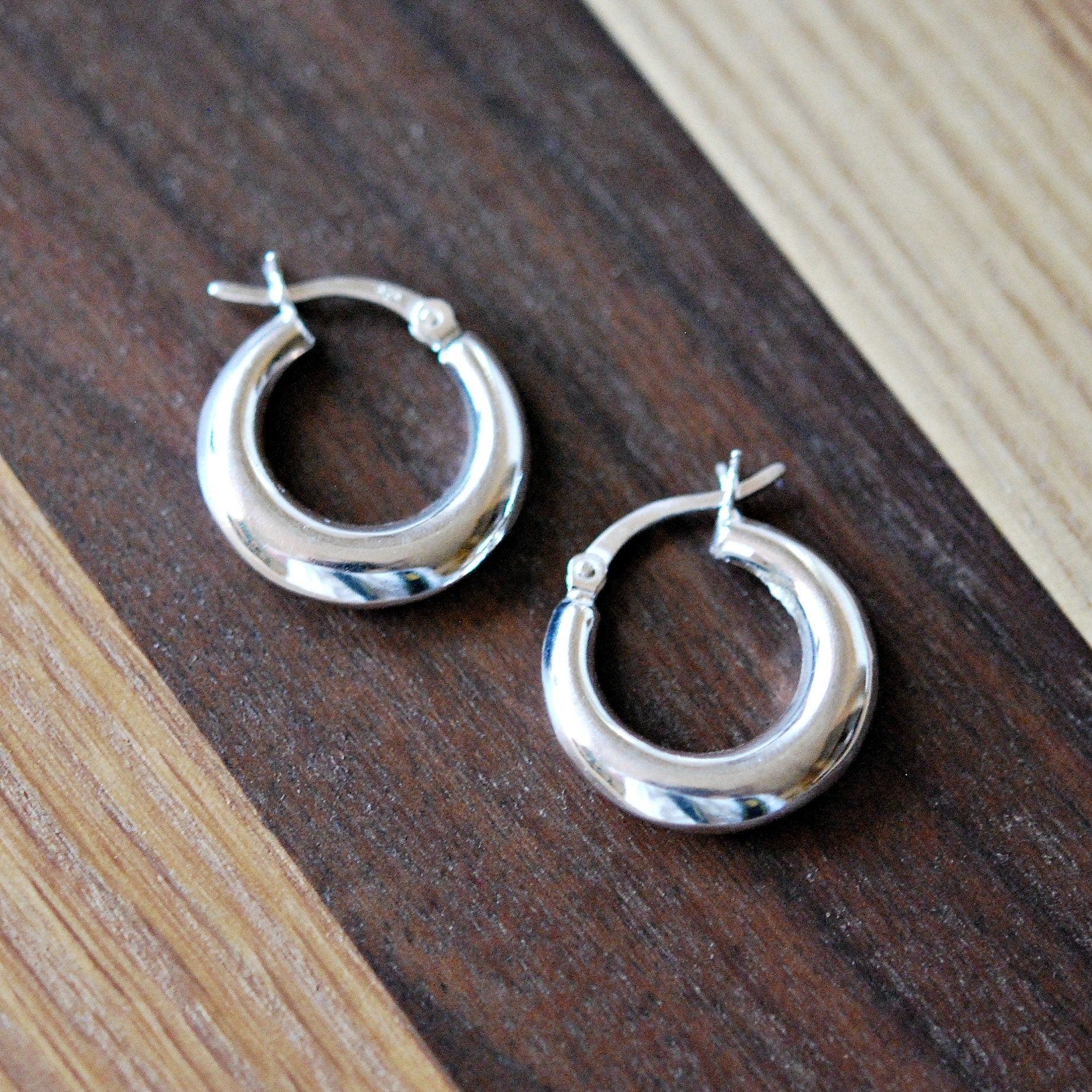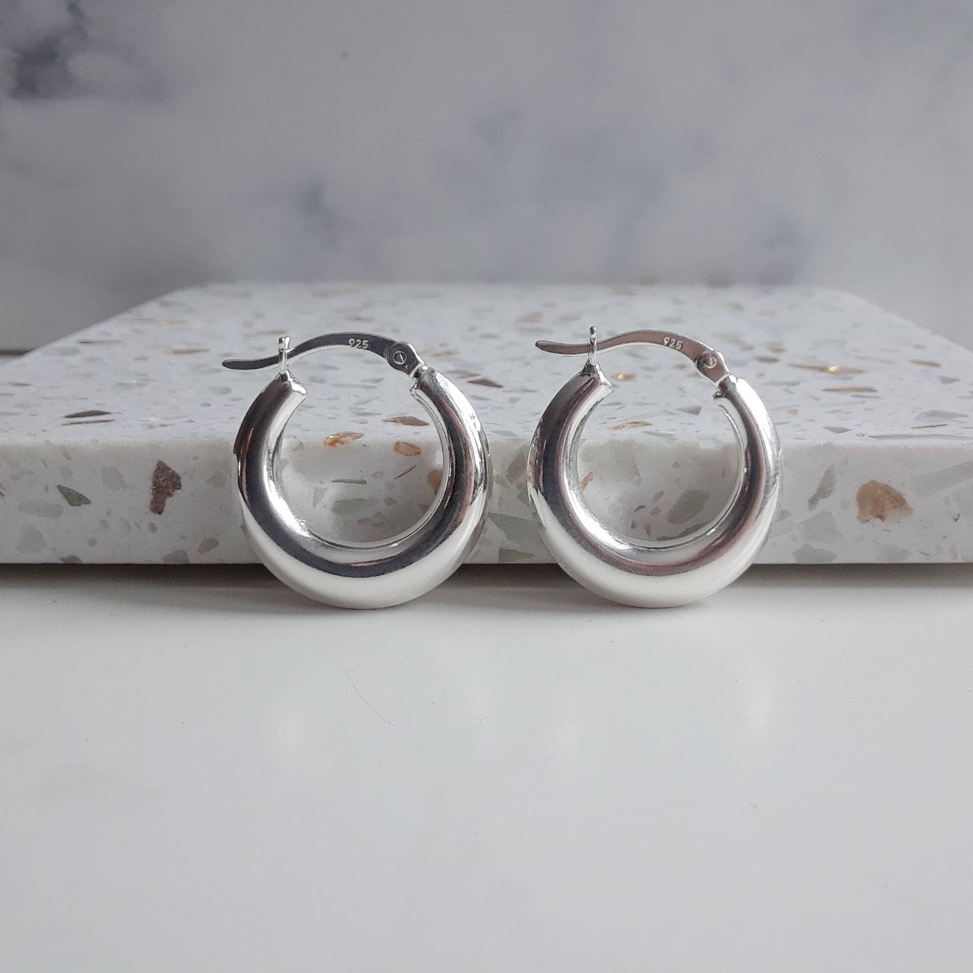 Sterling silver hoop earrings, puffy hoops, silver huggie hoops, modern hoops, minimalist hoops, huggie earrings, chunky silver earrings