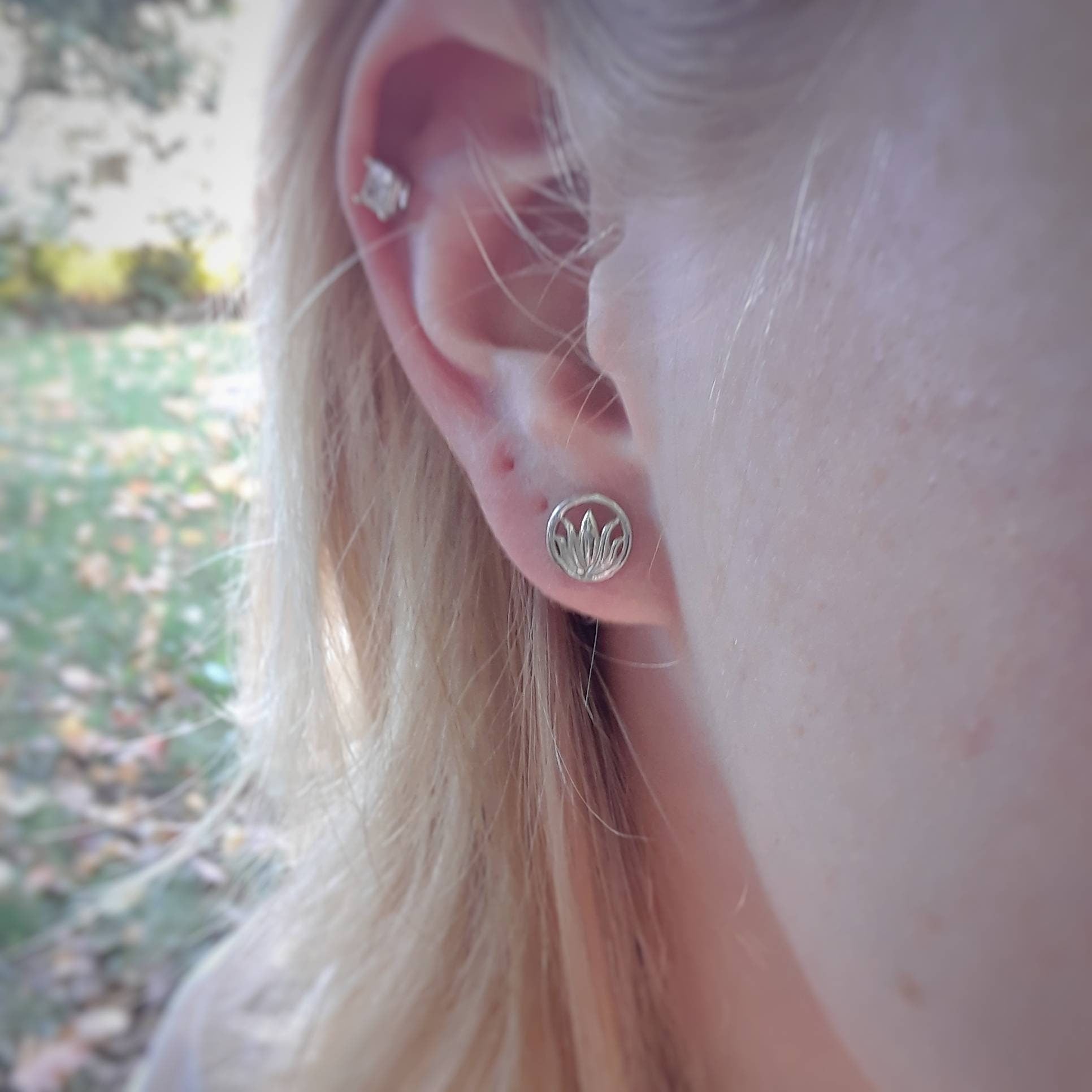 Lotus earrings, sterling silver lotus flower studs, yoga earrings, dainty silver studs, sterling silver earrings, lotus stud earrings