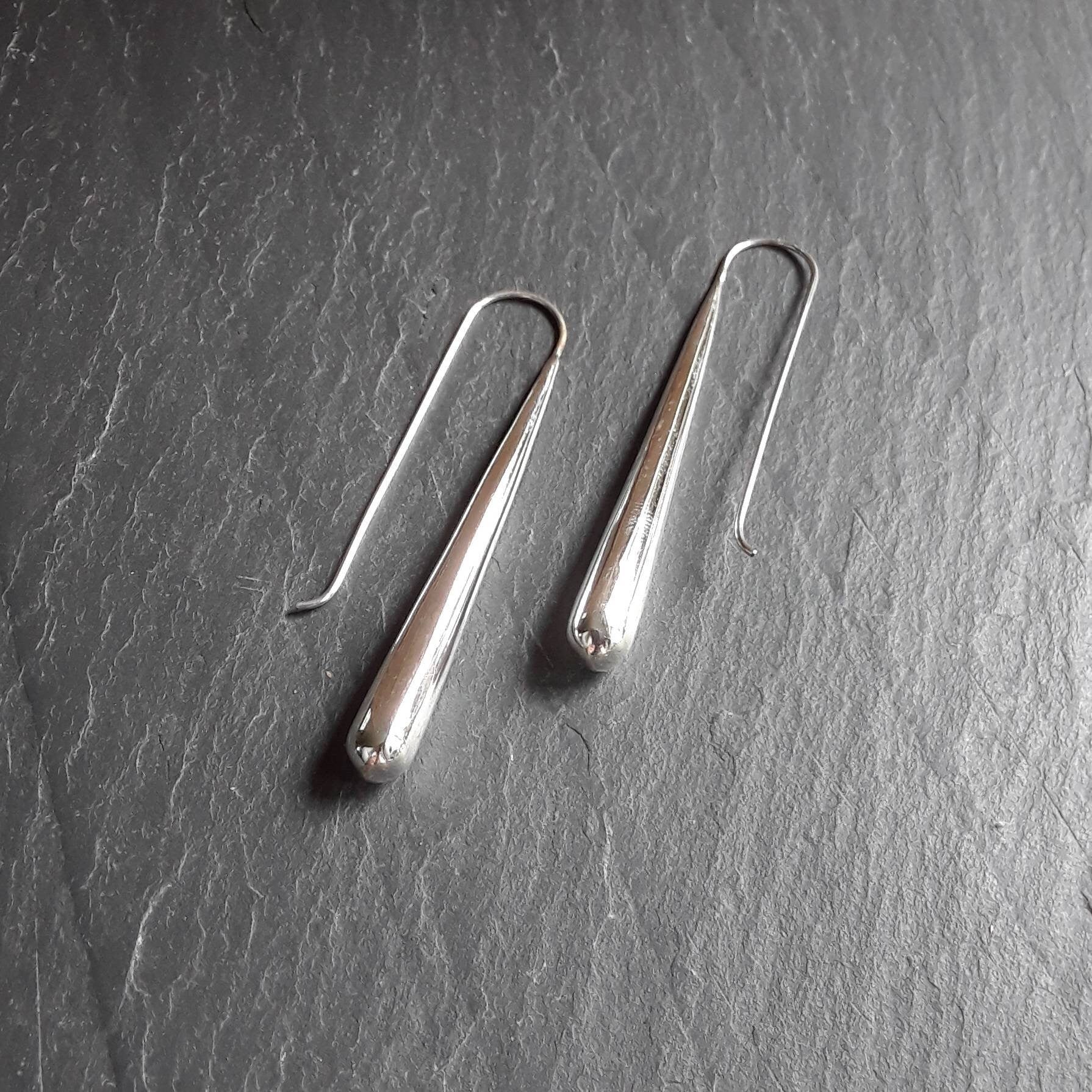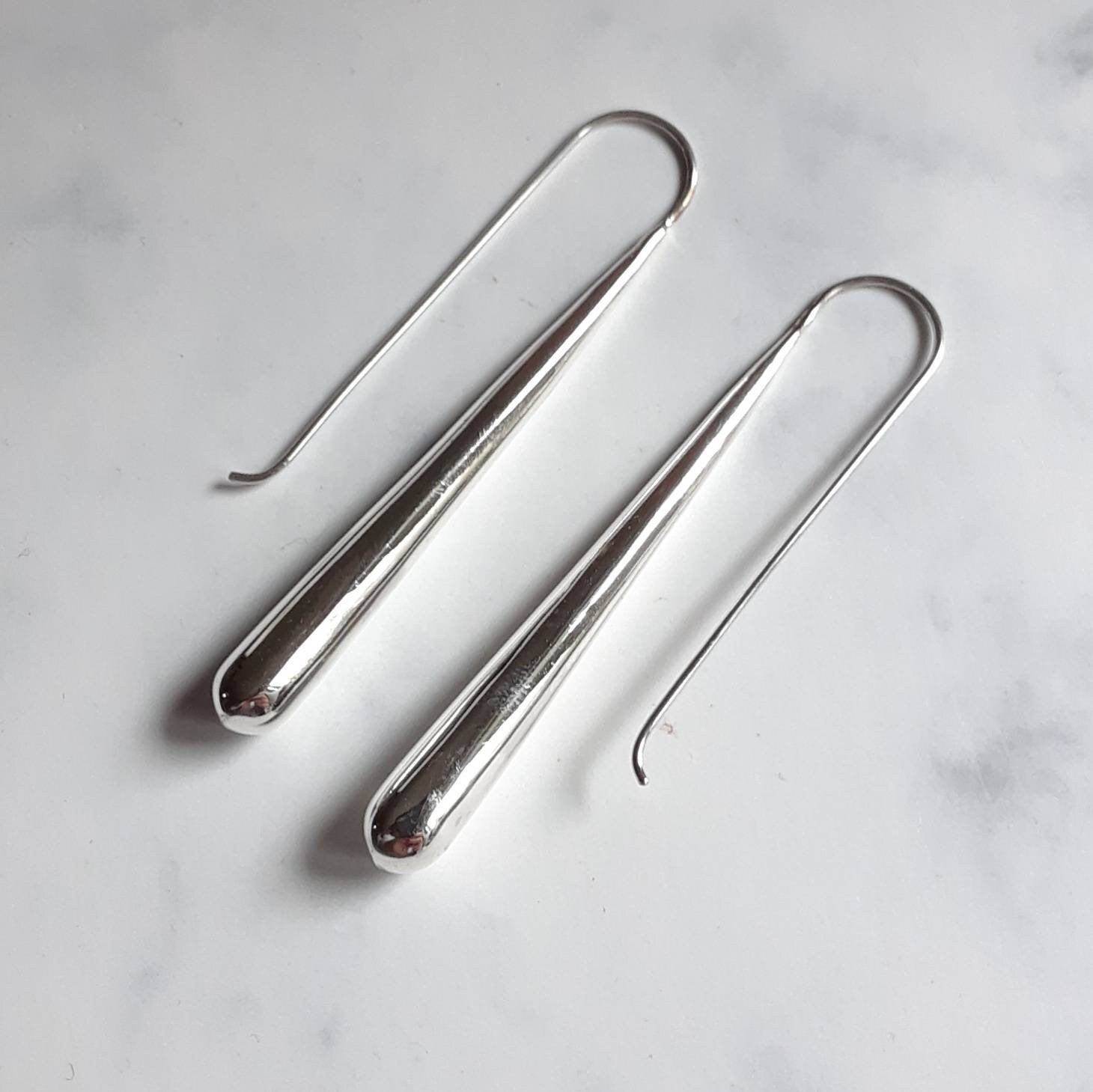 Your new everyday favourite! These simple yet modern sterling silver extra long earrings with a slim teardrop are easy to wear.