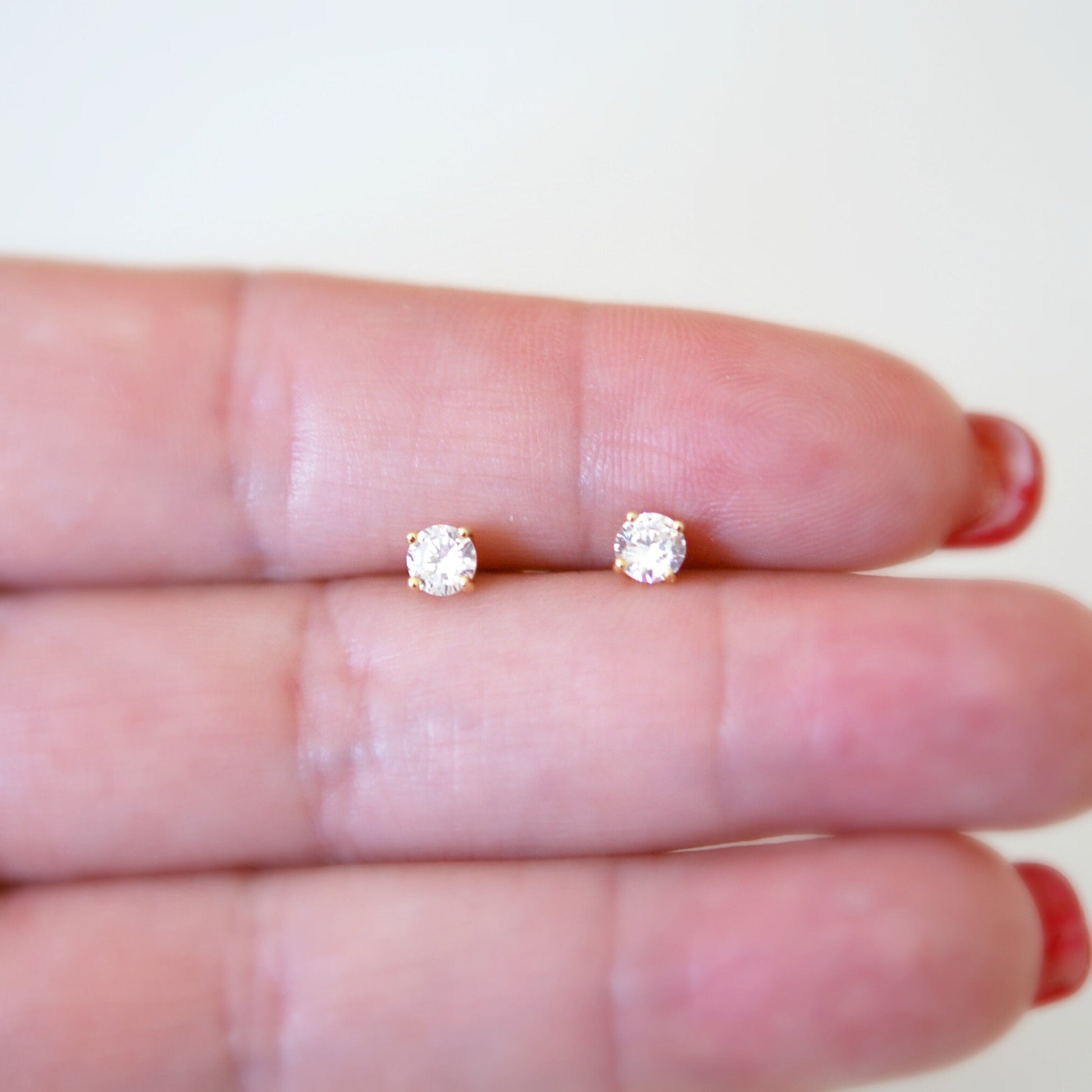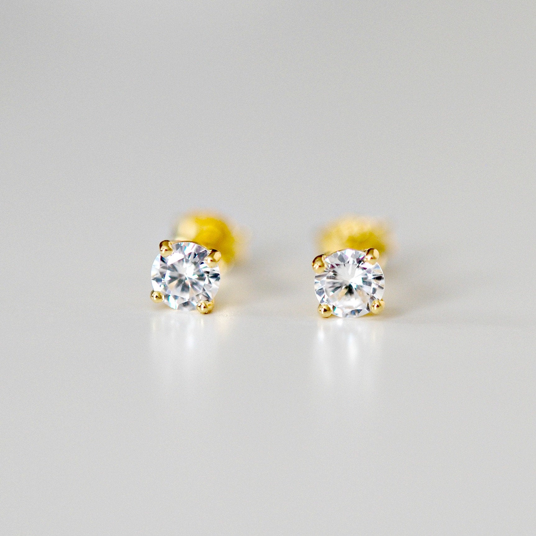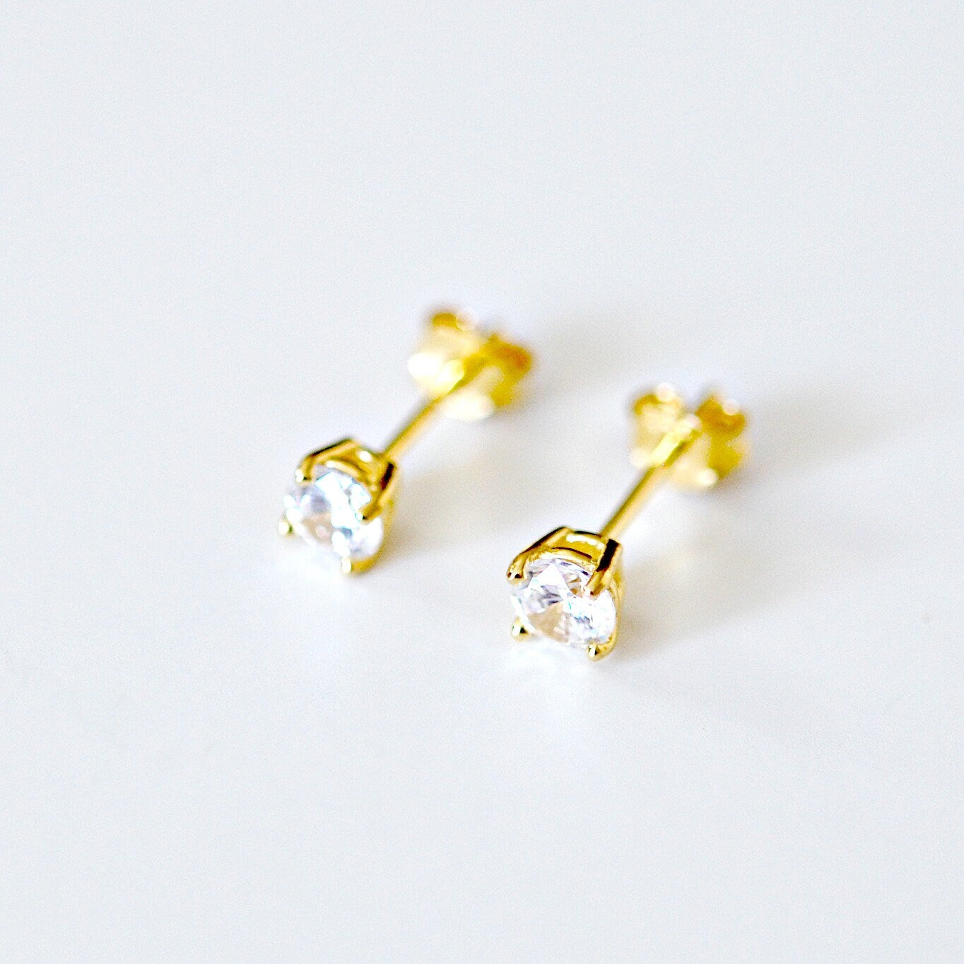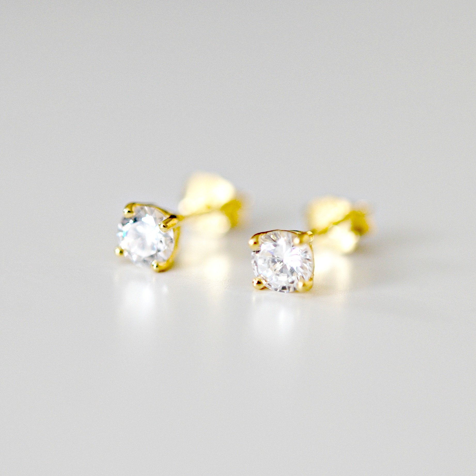 4mm clear cubic zirconia studs - gold