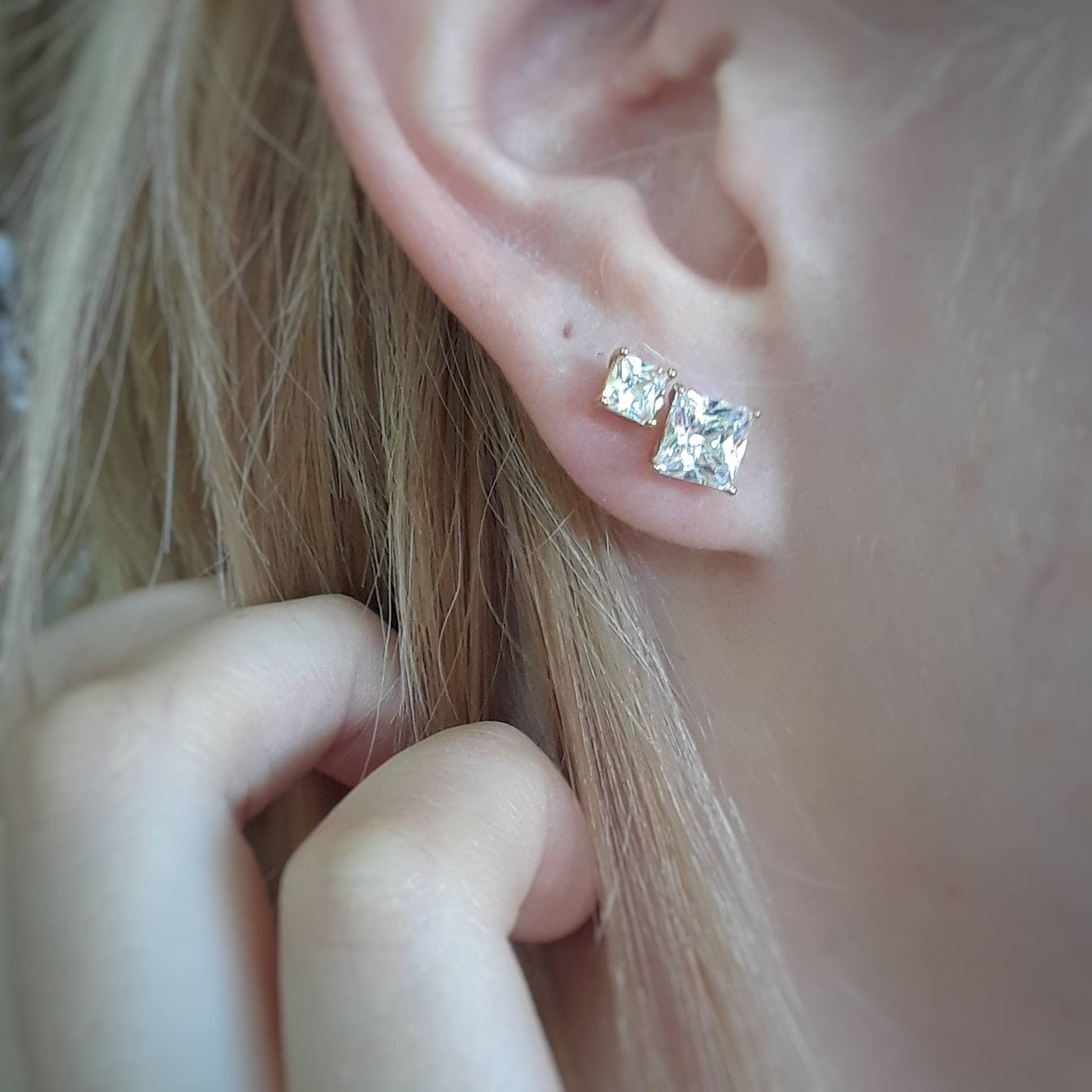 ✩ Earrings worn by model are for size reference only - your pair will of course be brand new - never worn! Model photo shows the 4mm square paired with the larger 6mm version (also available in my shop!)